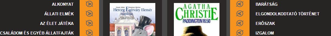 A könyveket 13 kategóriába soroltuk, egy-egy könyv címe alapján.